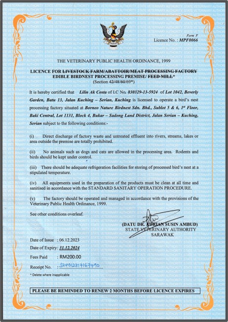 - 每一批出口的净燕窝都需要进行化验检测已达到食用标准