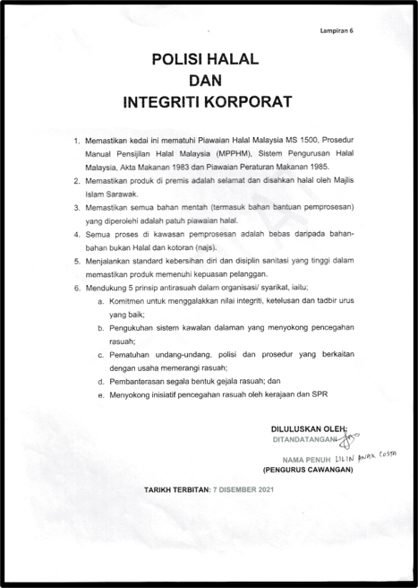 - 员工会接受食品安全课程和清真课程,及个人健康检查。