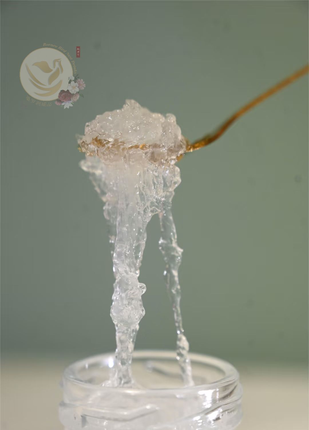 燕窝干品清香无霉味,炖煮后揭盖有股熟鸡蛋的蛋白味 - 摸